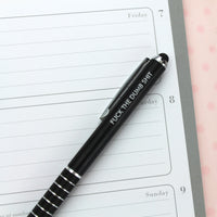 There's only so much time in a day and so many fucks to give. The world is loud and full of pointless distractions, but with this pen, you can cut through the bullshit and focus on what really matters. Write down your priorities each day and cross them off as you go. If it's not on your list, don't bother giving a fuck. It's a simple but effective solution. Give it a try!